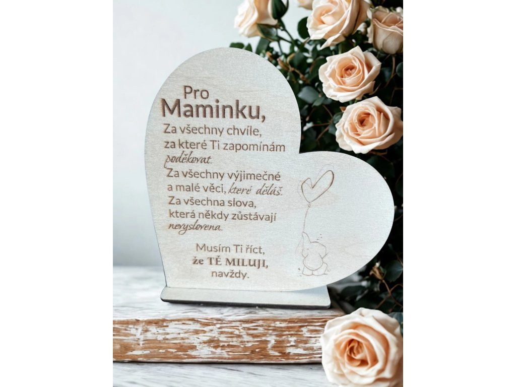 Dřevěné srdce pro maminku – jedinečný dárek z březové překližky s gravírovaným věnováním