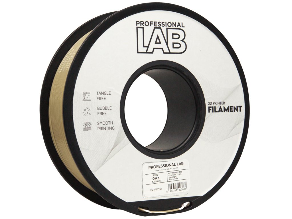PETG od Prof. Lab je vysoce kvalitní 3D tiskový filament, který kombinuje výhody PLA a ABS – je pevný, odolný vůči teplotě, vlhkosti i chemickému opotřebení, a přesto zůstává velmi dobře tisknutelný. Díky své houževnatosti, průhlednosti a stabilitě je ideální pro funkční díly, kryty, technické součástky i venkovní použití.