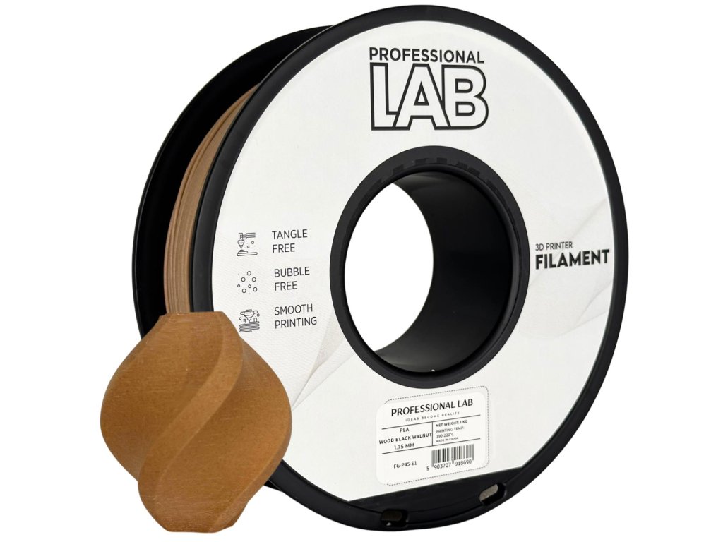 Prof. Lab Filament PLA 1.75 mm Dřevo Vlašský ořech | Wood Black Walnut je perfektní kombinací kvality, estetiky a snadného použití. Nabízí realistický vzhled dřeva, spolehlivý tisk a široké možnosti využití. Pokud hledáte materiál, který vašim 3D tiskům dodá teplo a přírodní charakter, je tento filament tou správnou volbou.