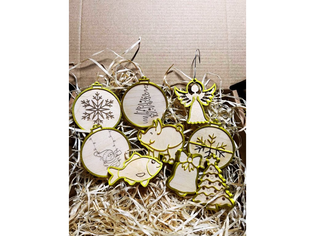 Každá ozdoba je tvořena obrysem vytištěným na 3D tiskárně z ekologického PLA v elegantní zlaté barvě, která působí luxusně a slavnostně. Střed ozdoby je vyřezán z jemné březové překližky, takže se v ní snoubí moderní technologie a přírodní materiál. Tento kontrast dodává ozdobám jedinečný vzhled a šmrnc, který na klasických skleněných nebo plastových ozdobách nenajdete.